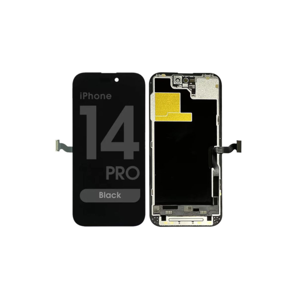 Hard OLED display and Touchscreen assembly (Hard OLED, IC removable), 90Hz, 6.1 inches, includes frame; Compatible-style high-brightness replacement. Compatibility: iPhone 14 Pro (A2890/A2650/A2889/A2892).